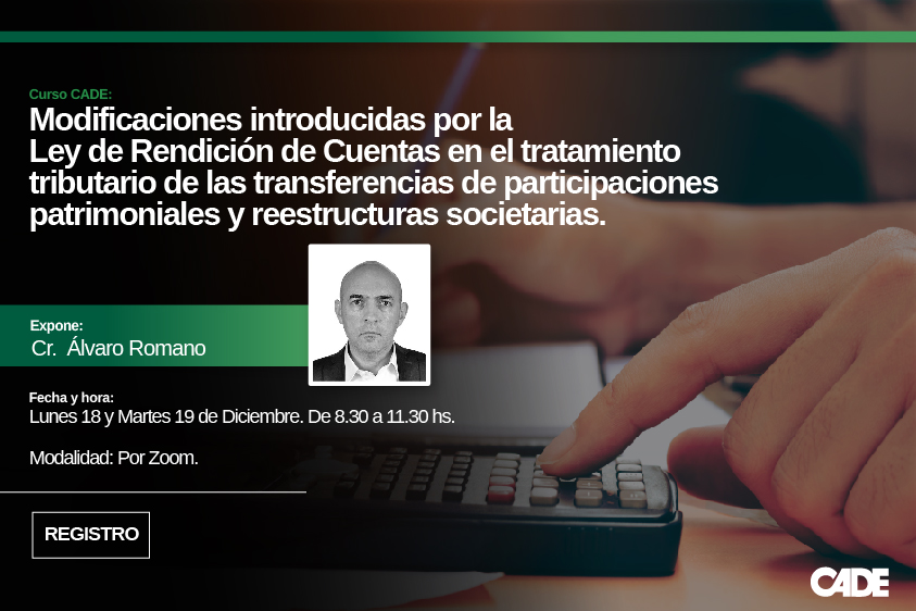 Curso x Zoom: Modificaciones introducidas por la Ley de Rendición de Cuentas en el tratamiento tributario de las transferencias de participaciones patrimoniales y reestructuras societarias.